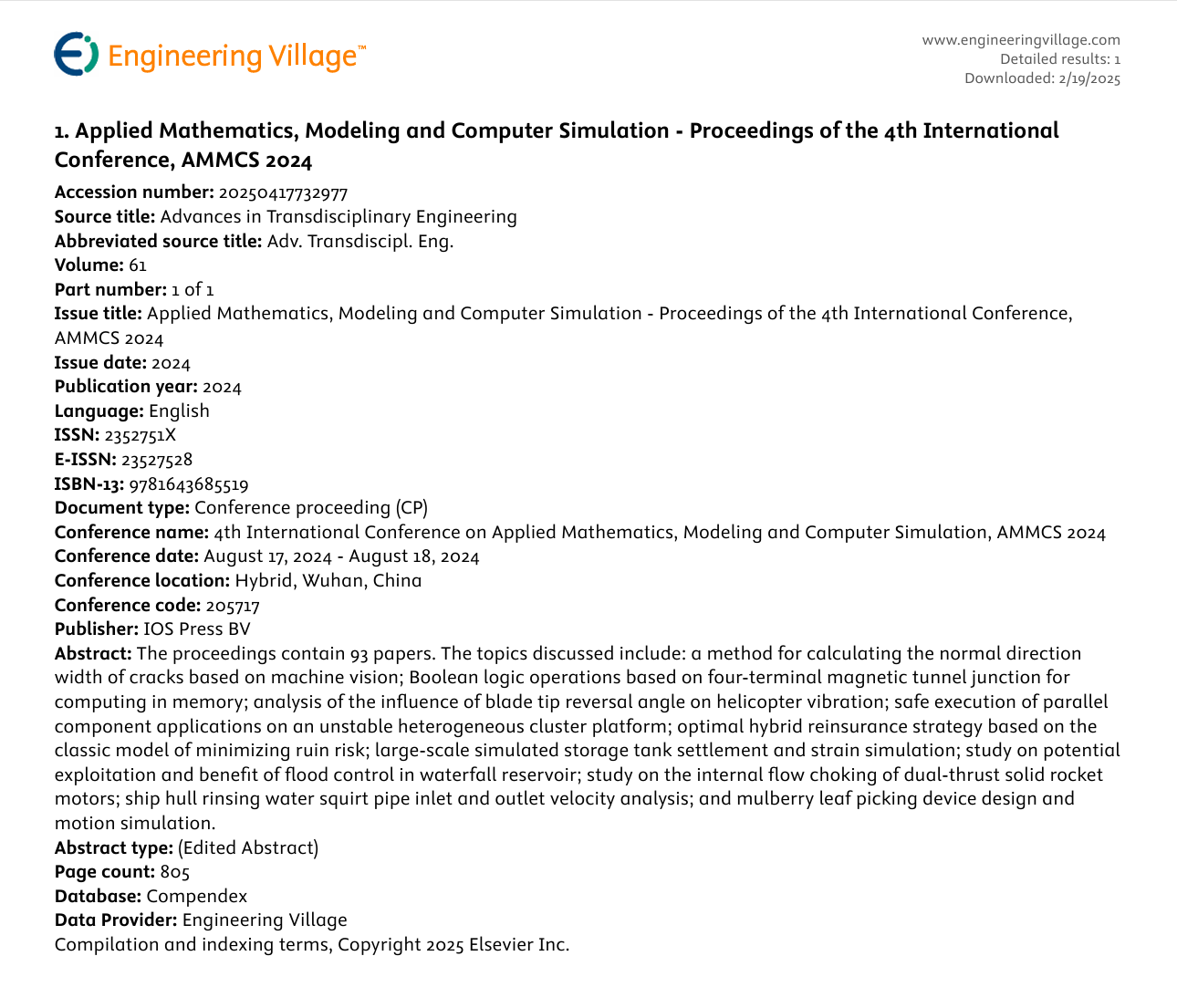 1.AMMCS 2024 has been indexed by Ei Compendex. [January 30, 2025]
